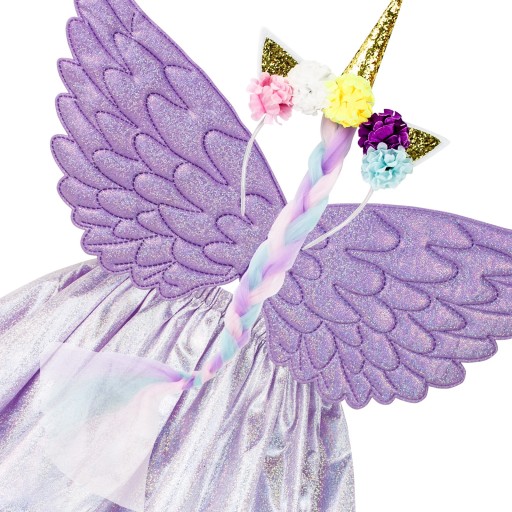 Набір з металевих і красиво мерехтливих крил + спідниця кольору металік з підкладкою з фатину + мерехтлива пов'язка на голову з мерехтливим рогом і пастельний хвіст з фатину