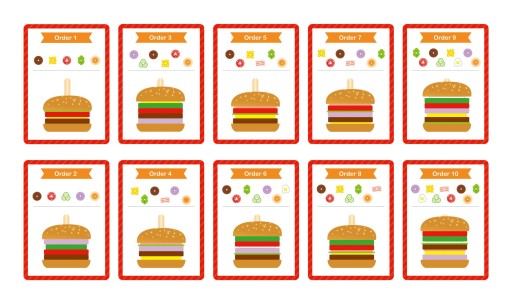 - іграшка полягає у відтворенні/компонуванні бургера за шаблонами