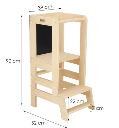 Великою перевагою кухонного помічника є можливість регулювати висоту платформи на 3 рівнях - 22 см, 35 см або 51 см. Просто зніміть рухому основу та встановіть її на одній із 3 можливих висот. Вбудована верхня частина робить дитину повністю безпечною при приготуванні різноманітних страв на кухні. Ми також подбали про такі деталі, як ретельне шліфування країв.