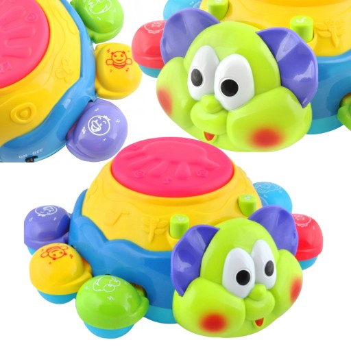 Іграшка грає мелодії і бігає (тікає), що допомагає навчитися повзати.
