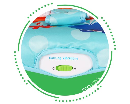 Вишибала оснащенамодуль заспокоєння дитини,ніжна вібрація в приємний спосібзаспокоїть і покладе малюка спати.У передній частині розташована панель з кнопкою, яка активує цю функцію, живиться механізм від акумулятора1,5 В R20(не входить).