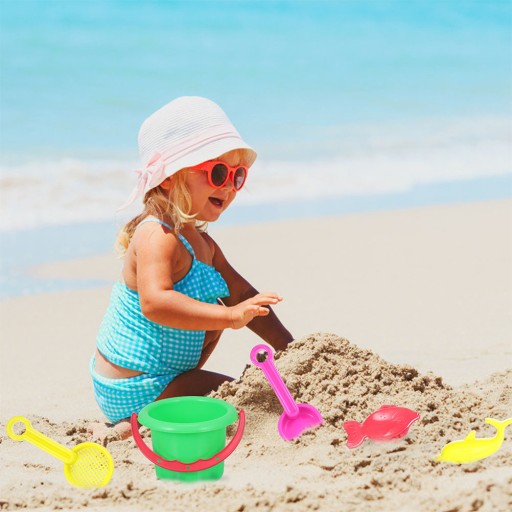 Це дитячий пляжний набір, який виготовлений з пластику преміум-класу. Крім того, це також може сприяти здатності дитини сприймати колір, потенційній творчості, уяві та соціалізації. Розваги для дітей і чудові для пляжу на відкритому повітрі Дітям це сподобається.