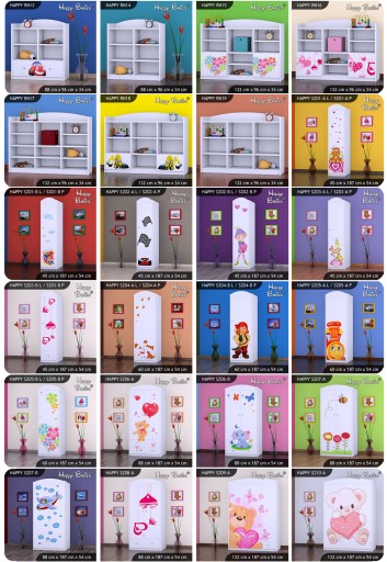 Майже 90 моделей меблів (тумбочки, скрині для іграшок, комоди, стелажі, шафи, столи, книжкові полиці) призначені для будь-якого облаштування дитячої кімнати.