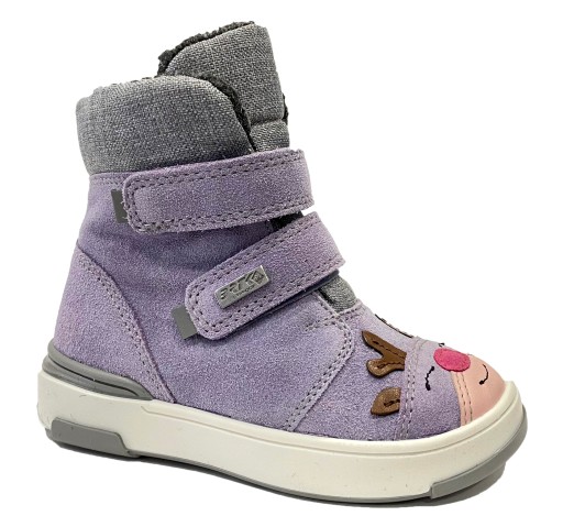 Модні черевики від авторитетної фірми Bartek в красивих кольорах вересу. Взуття застібається на липучку, що значно полегшує надягання навіть з високим супінатором. Центр обшитий теплою натуральною вовною.Черевики мають гнучку та нековзку підошву.Крім того, взуття Bartek має водонепроникну мембрану.
