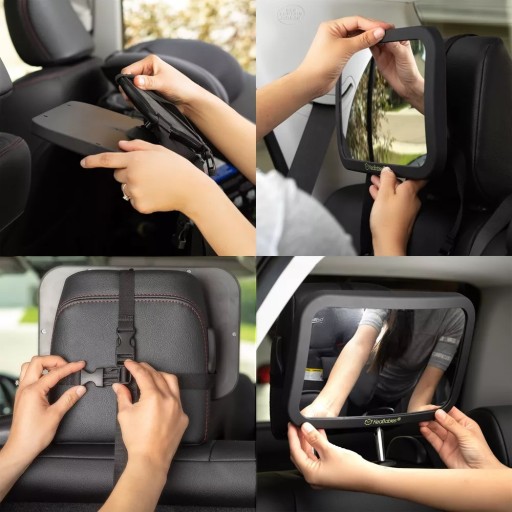 Дзеркало дитячого автокрісла оснащено міцними ременями з подвійною пряжкою, які забезпечують міцне та стабільне кріплення навіть під час довгих поїздок по нерівних місцях. Ці ремінці мають складні шви, які захищають їх від розриву. Крім того, дзеркало оснащене виїмкою на задній частині для підвищення стійкості.