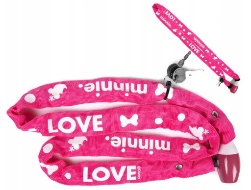 Замок ланцюга підвищує захист велосипеда від крадіжки. Він складається зі сталевого ланцюга, покритого чохлом з поліефірної тканини, який захищає раму велосипеда від подряпин. Замок декорований мотивами Disney і Marvel Довжина застібки 120 см
