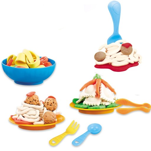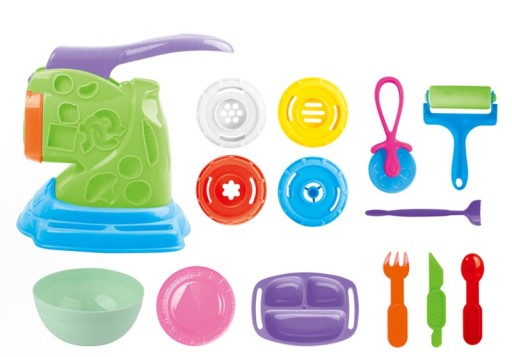 Грайте в кухаря, готуйте самі різні страви, у вашому розпорядженні барвистий набір з тістовіджимом і формочками. Вигадувати страви може бути легко. Можна зліпити різнокольорові вареники. різні форми макаронів та інше за допомогою змінних насадок.