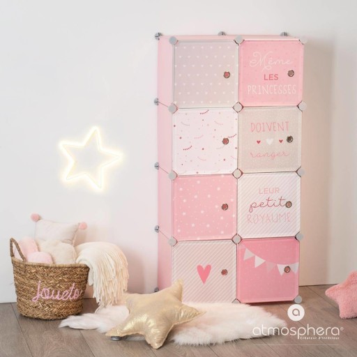 Шафа для дитячої кімнати 64 х 31 х 124 см, рожевий, це пропозиція для найменших від французького дизайнера інтер'єру Atmosphera for kids. Ідеально підходить для зберігання підручного одягу чи косметики, а також книг, іграшок, м’яких тварин і настільних ігор. Завдяки його універсальності ви можете зберігати практично все, що захочете заховати, щоб це не було на виду і водночас під рукою.