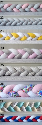 Таким чином, ми можемо зробити косу з однієї тканини, напр. виготовлений з рожевої нори або 3 різних тканин, напр. один валик - рожевий мінкі, другий валик - сірий мінкі, третій валик - бавовна № 1 - сірий зигзаг