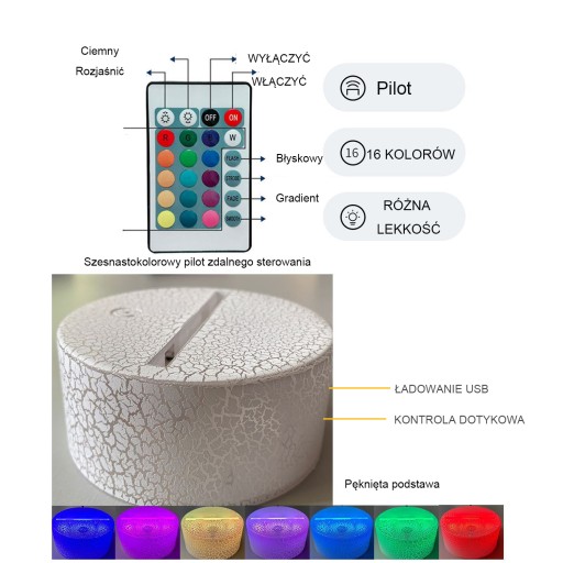 Дитячий нічник, нічник 3D-ілюзія, 16 кольорів, що змінюються за допомогою пульта дистанційного керування, декор кімнати, дитячі подарунки для хлопчиків і дівчаток