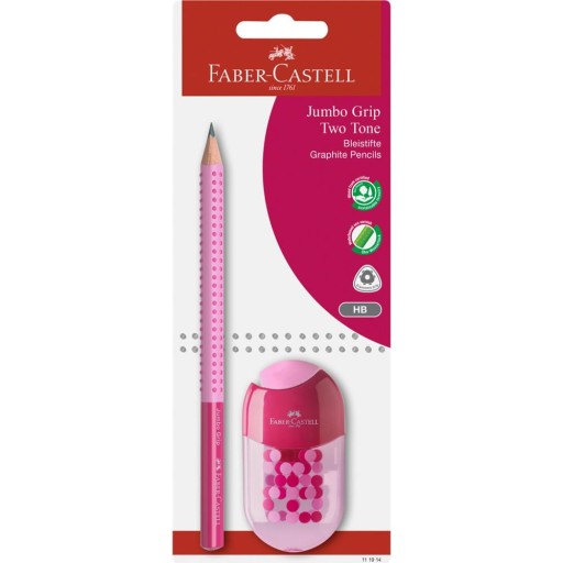Набір точилок Jumbo Grip 2001 Two Tone + точилка з гумками FABER-CASTELL. Блістерна упаковка. Суміш кольорів.