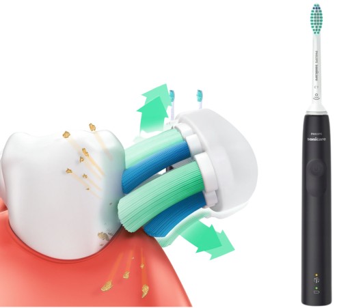Удосконалена звукова технологія Philips Sonic закачує воду в міжзубні проміжки та видаляє зубний наліт лише рухами щітки.