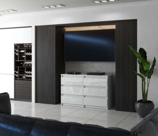 Сучасний та естетичний дизайн, функціональність, створюючи меблі для Вас, ми розуміємо, що зовнішній вигляд меблів - це ще не все. Найголовніше - це його якість, яка дозволить комфортно і довго ним користуватися. Його конструкція виготовлена з високоякісного ламінованого меблевого щита товщиною 16 мм. В кінцевому процесі краї комода були покриті ABS-матеріалом товщиною 1 мм, який є дуже стійким до подряпин. Шухляди оснащені кульковими напрямними, що робить їх відкриття надзвичайно плавним і легким.