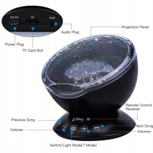 Оснащений слотом для карт TF (картка TF не входить) і вбудованим міні-динаміком, насолоджуйтесь музикою, музикою для відпочинку, медитації, вставляючи карту TF або підключаючись до зовнішнього джерела звуку. І вбудованих звуків чотири: звуки лісових комах, звуки чайок, морських хвиль, звуки плавання водоплавних птахів і веселі звуки природи.