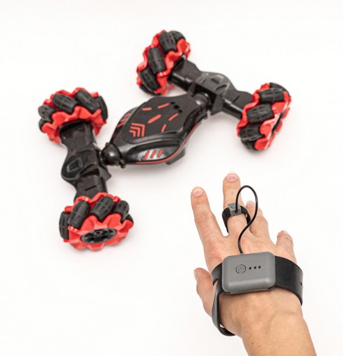 Автомобіль MXRC-100 RC – це транспортний засіб, яким можна керувати різними способами. У комплект входять: класичний пульт з кнопками та джойстиками та наручний, що реагує на рухи руки.