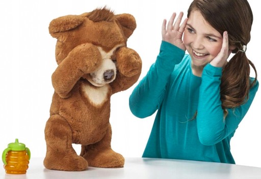 Ведмідь реагує, коли його беруть на руки, любить гарну гру в підглядання, лепетає, коли ви з ним розмовляєте, і любить смачні закуски.