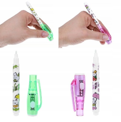 - 2 РУЧКИ = 2 МОЖЛИВОСТІ У набір входять 2 ручки з двома різними можливостями використання. Перший — малювання за допомогою світлодіодного підсвічування, розташованого на кришці ручки, просто увімкніть його за допомогою повзунка, другий спосіб — написання зі знятим кінчиком у вигляді звичайного маркера, ідеально підходить для передачі секретних повідомлень, видимих лише в темряві. . Ручка має кліпсу, яку можна прикріпити до дошки, прикріпити до кишені чи рюкзака, щоб завжди мати її з собою, не ризикуючи втратити.