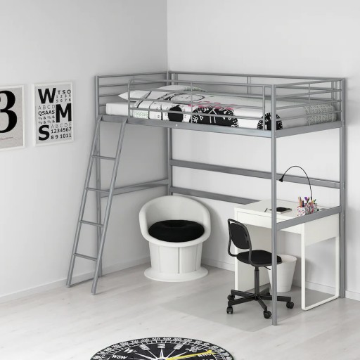 IKEA Мезонін, срібний, 90x200 см + пінопластовий матрац ASVANG, твердий, білий
