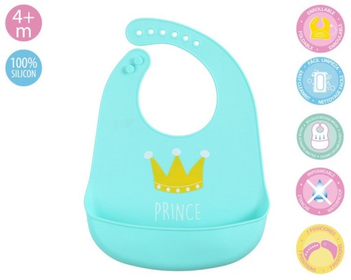 Нагрудник силіконовий з кишенею, блакитний принц 4м+ / Kiokids