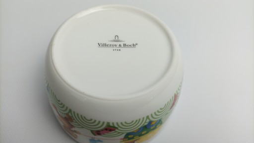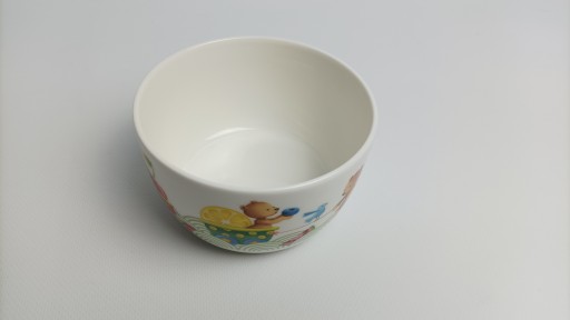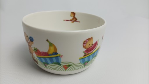 Дитячий набір Голодний як ведмідь від Villeroy & Boch прикрашений малюнком плюшевого ведмедика, який несе або розкладає фрукти. Барвисті персонажі спонукають дітей до їжі.
