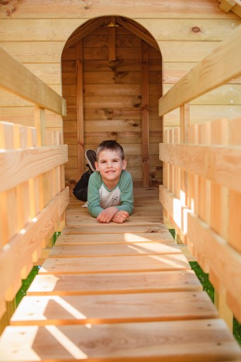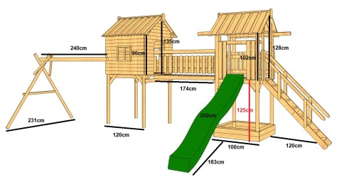 - Дитячий майданчик повністю з висушеної деревини сосни та ялини