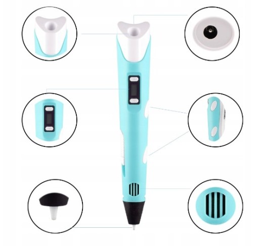 ТЕХНІЧНІ ХАРАКТЕРИСТИКИ Стилус для ручки: 18,5 см Вага ручки: 62 г Коробка: коробка з щільного картону, ідеальна в якості подарунка. Можливість друку картриджами: ABS і PLA Діаметр картриджа: 1,75 мм Дисплей: LCD, що показує робочу температуру пристрою. Робоча температура: 160-230С