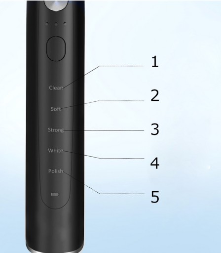 15 режимів роботи (5 режимів і 3 рівня інтенсивності вібрації: Clean / Soft / Strong / White / Polish)
