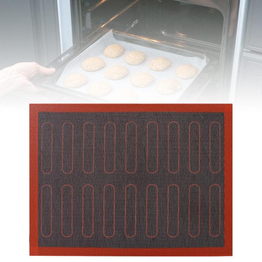 АНТИПРИГАРНИЙ: Килимок для випічки виготовлений з високоякісного силікону та скловолокна, термостійкий, антипригарна поверхня, міцний.