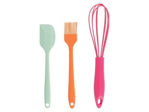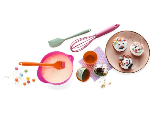 - силіконові форми для кексів, пензлик для випікання, скребок для тіста, віночок і миска