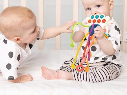 ãБезпечний для харчових продуктів матеріал. Інтерактивна іграшка виготовлена з високоякісного харчового силікону та АБС-пластику, нетоксична, не містить бісфенолу А та фталатів, сертифікована EN71 та ЄС CE. Губчасті мотузочки — чудові силіконові іграшки для прорізування зубів, вони можуть полегшити дискомфорт від прорізування зубів у дитини, заспокоїти емоції дитини та допомогти немовлятам розвинути навички жування.