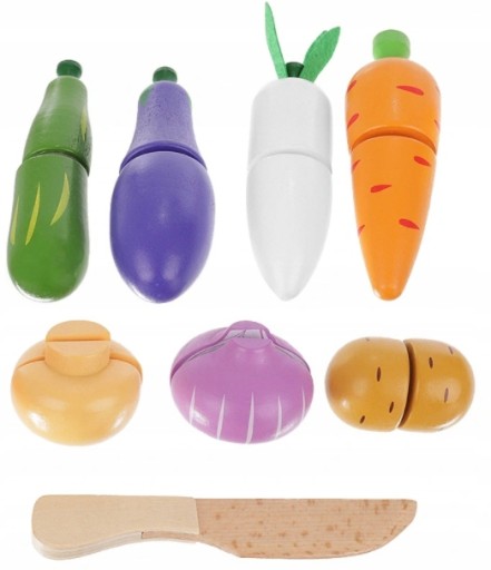 Величезним веселощам не буде кінця. Овочі можна ділити ножем на менші порції та шматочки, дитина грає, як зі справжніми продуктами. Крім того, він дізнається їх назви, зовнішній вигляд і форму. Всі предмети дуже акуратно і акуратно.