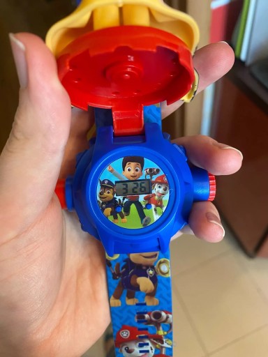 Щоб переглянути зображення, просто утримуйте кнопку збоку годинника, а потім скористайтеся колесом фокусування. Цей годинник не тільки відображає дату і час, а й має вбудований проектор, що неодмінно сподобається фанатам Paw Patrol.