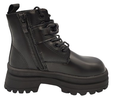 Чорні утеплені чоботи - ідеальний вибір для дівчат на сезон осінь-зима. Утеплені м'яким хутром, вони подарують тепло і комфорт у холодні дні. Товста підошва з протектором полегшить пересування в невизначених зимових умовах. Легке пристосування до стопи забезпечується шнурівкою, бічними блискавками і липучками. Взуття легко поєднується як з брюками, так і зі спідницею чи сукнею.