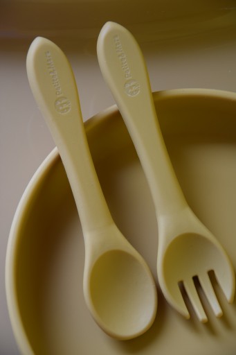 Набір, що складається з виделки і ложки, повністю виготовлений з харчового силікону без бісфенолу А. Завдяки цьому дитина може їсти як гарячу, так і холодну їжу за столовими приборами. Гнучкий силікон робить мистецтво ідеальним для чутливих малюків сьогодні. Вони призначені для маленьких дітей від 6 місяців, які вводяться в режим розширеного харчування, і тих, хто вже успішно вчиться харчуватися самостійно. Завдяки округлим формам і маленьким розмірам маленькій дитині легше брати і їсти їжу.