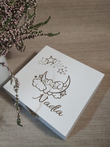 Шкатулка, дерев'яна скринька білого кольору з гравіюванням імені. 15,5 см х 14 см.