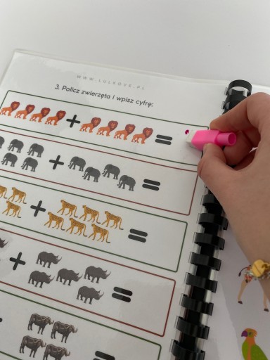 КНИЖКА ДЛЯ ДІТЕЙ ТВАРИНИ В ЗООПАРКУ - В КОМПЛЕКТІ МАЛЮНКИ НА ЛИПУЧКАХ ТА РУЧКА