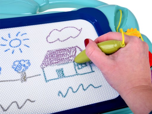 Малювання дозволить кожній дитині потренувати ручки, це буде веселим заняттям довгими вечорами, і навіть під час тривалої поїздки на машині чи поїзді така дошка неодмінно стане в нагоді. Дошка з рукописом має зручну ручку, тому чудово підходить для подорожей.