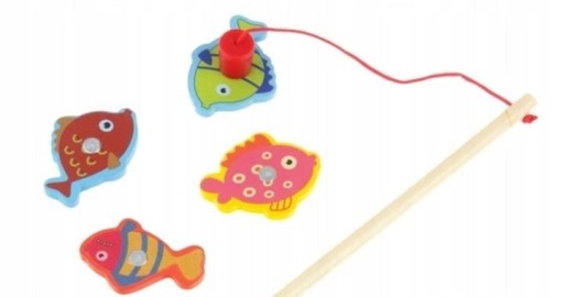 До іграшки прикріплена невелика вудка з магнітом і чотири рибки, дитина може грати в популярну гру риболовля.