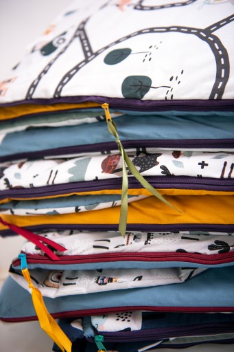 В спальний мішок і чохол вшиті бавовняні стрічки, на які можна вписати дані дитини. Зручний і практичний дитячий набір, який полегшить адаптацію дитини до дитячого садка.