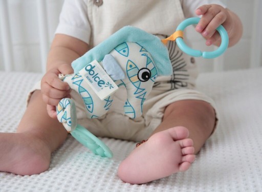 Морський коник Семмі - це м'яка сенсорна іграшка і підвіска для коляски, автокрісла або дитячої коляски.