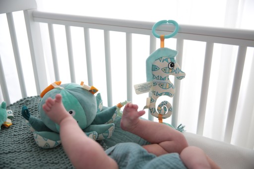 Морський коник Семмі - це м'яка сенсорна іграшка і підвіска для коляски, автокрісла або дитячої коляски.