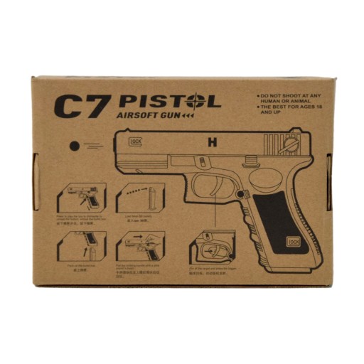 - металевий замок і корпус з міцного матеріалу, що імітує справжній пістолет