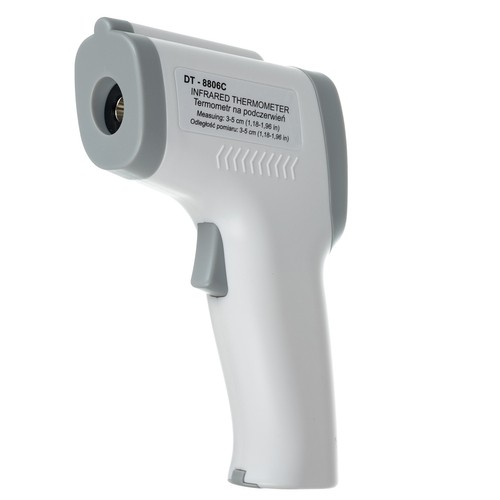 Безконтактний термометр для вимірювання температури тіла та будь-яких поверхонь. Для використання як вдома, так і в громадських місцях. Зручна форма «пістолет» ідеально підходить для температурного екрану. Щоб виміряти температуру, просто прикладіть термометр до чола на відстані 3-5 см і натисніть кнопку на ручці.