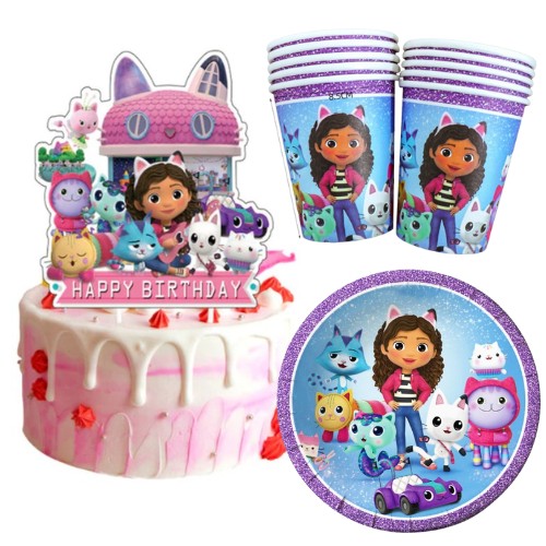 Також ми пропонуємо інші товари із серії «Будиночок для кота Габі»: талісмани, кульки, топпери, гірлянди, чашки, тарілки, серветки та набори наклейок.