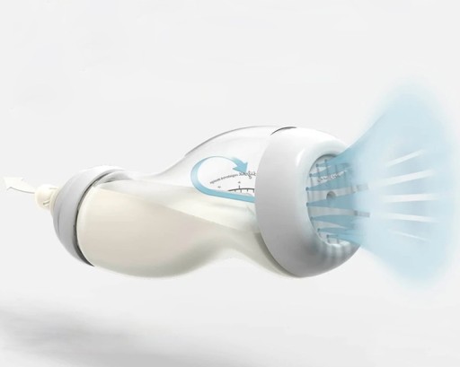 - Клапан в основі пляшечки запобігає змішуванню молока з повітрям під час годування.
