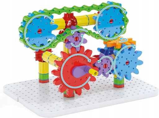 Набір дозволяє створити складну тривимірну конструкцію, з'єднавши шестерні, які можна приводити в рух. Завдяки пластиковому ланцюгу можна привести в рух не з'єднані між собою шестерні. Це чудова можливість познайомити дитину з принципами механіки, розважаючись.