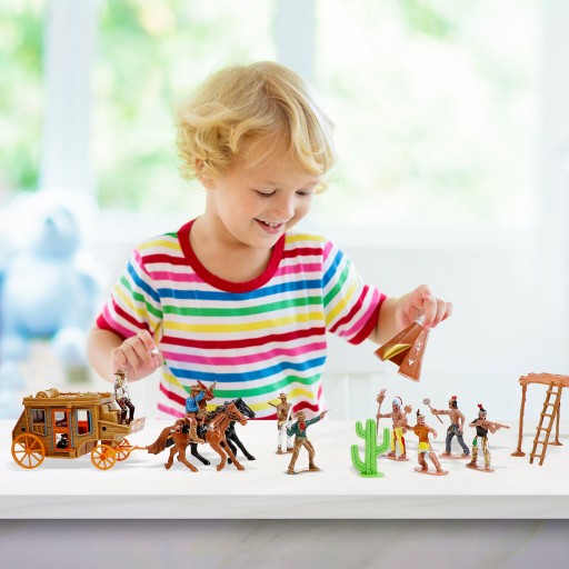 Преміальні матеріали для міцного та тривалого використання, тонка робота, гладкі та круглі краї, не поранять дитячі руки під час гри, безпечно та цікаво. З цими різними ковбоями та індіанцями ви можете дозволити своїм дітям дізнатися про нашу західну історію весело та зручно.