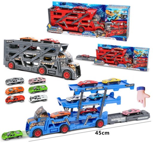 Евакуатор і 6 машин подарують кожній дитині море задоволення. З такою вантажівкою не буде нудно жодній дитині. Завдяки тому, що причіп розкладний, всі ресори вміщаються без проблем. Ззаду причепа є складаний підпружинений пандус, а спереду вантажівки вільно виїжджають іграшкові машинки з металу та пластику. У комплект входить трирівнева вантажівка Lawet з платформою для автомобілів.