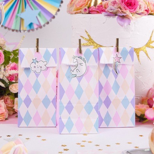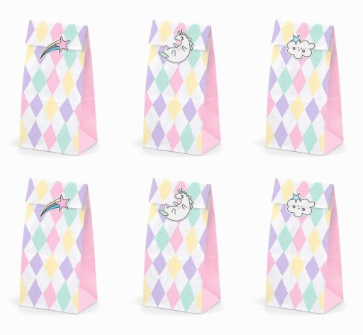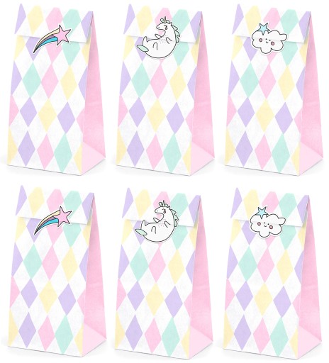 Пакети для цукерок Unicorn, набір включає 6 пакетів з принтом і 6 наклейок, розміри після складання приблизно 8 x 18 x 6 см.