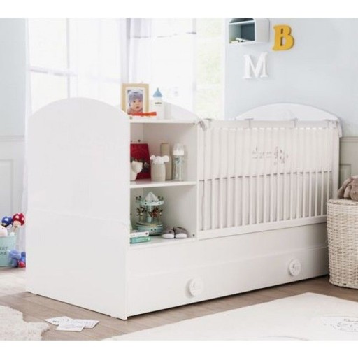 -Красиве та функціональне дитяче бавовняне гніздо, яке росте разом з вашою дитиною. Виготовлена з високоякісної МДФ плити білого кольору і покрита шаром меламіну, який підвищує стійкість меблів до подряпин, стирання і вологи.